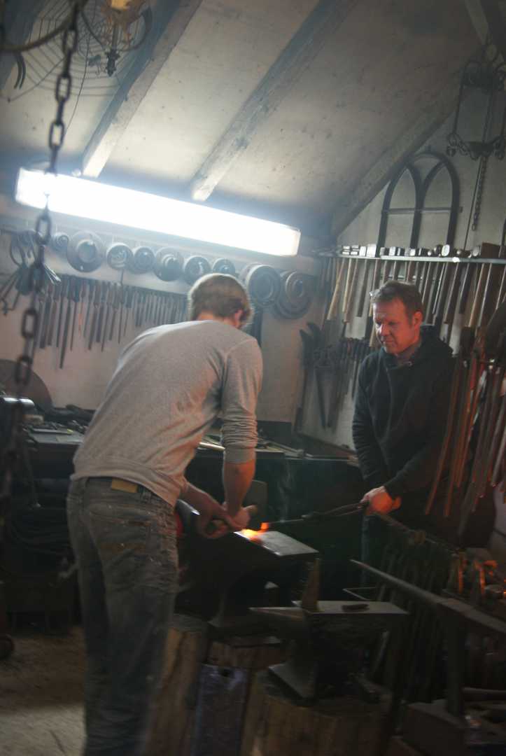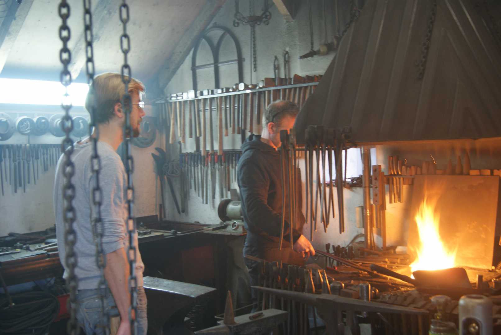 In de ambachtelijke smederij brandt het smidsvuur volop.